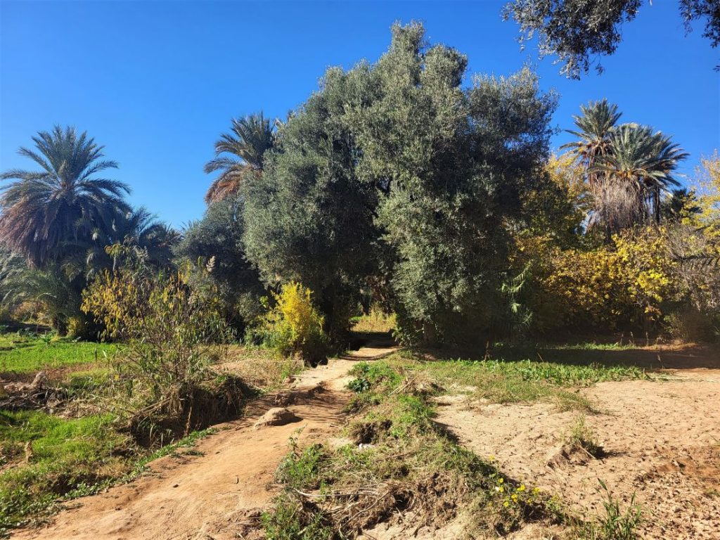 The palm grove was home to lots of little fields, where local people plant crops, such as cabbages. Small irrigation channels ran along the parched ground.
