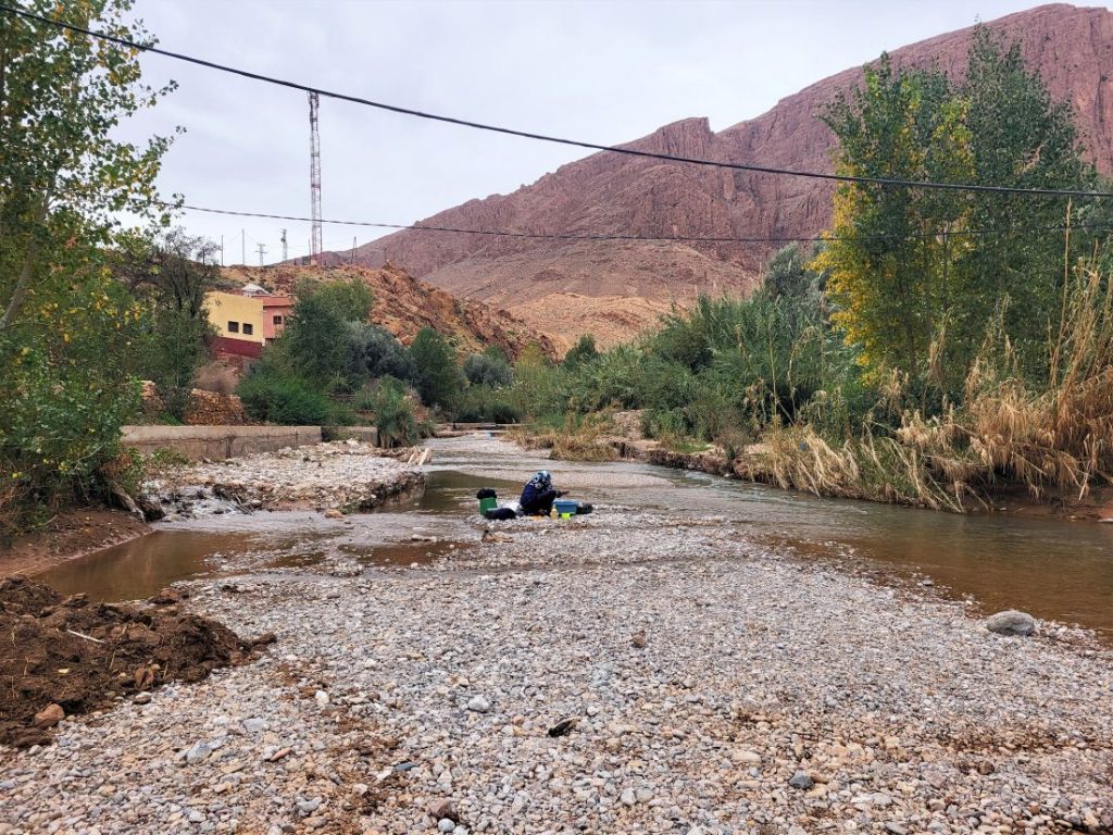 We came out in an oasis around the Todra River, where the locals grow crops, such as cabbages, and where a few women were washing items in the river (above).